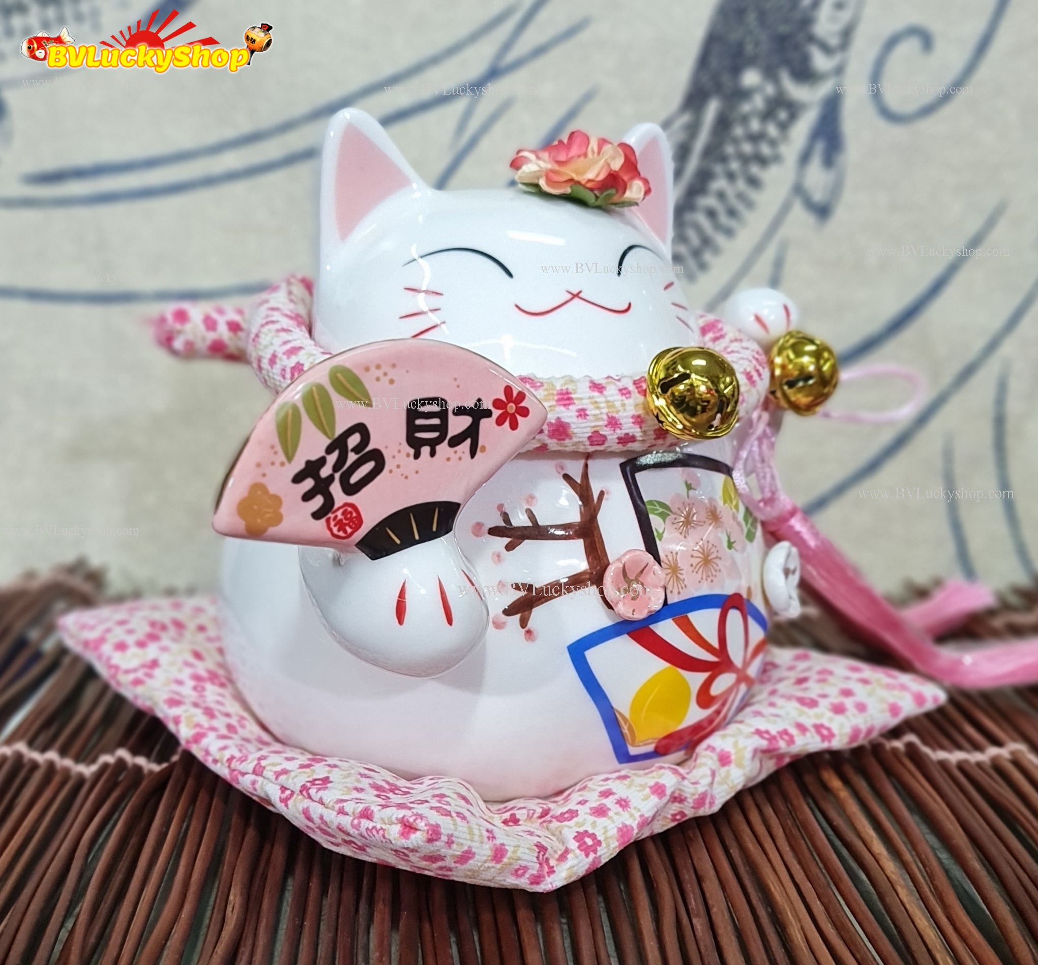 Shopee : แมวกวัก แมวนำโชค แมวสไตล์ญี่ปุ่น สูง 6.7นิ้ว ถือพัด -เซรามิค [A0812-Pi] | Shopee Thailand