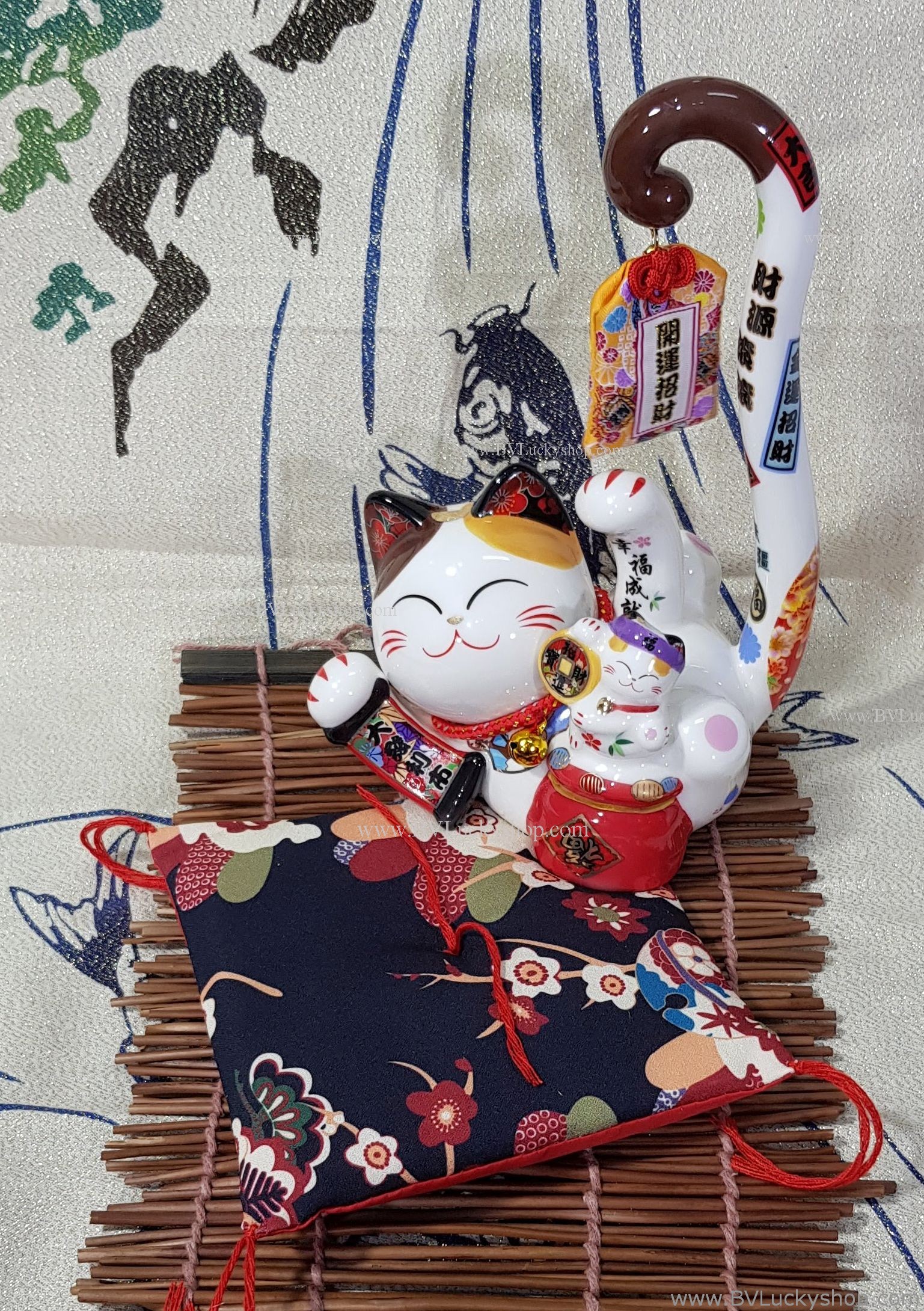 + มีลูกแมว ช่วยกันกวักๆ ยืนอยู่บนถุงสมบัติเงินทอง