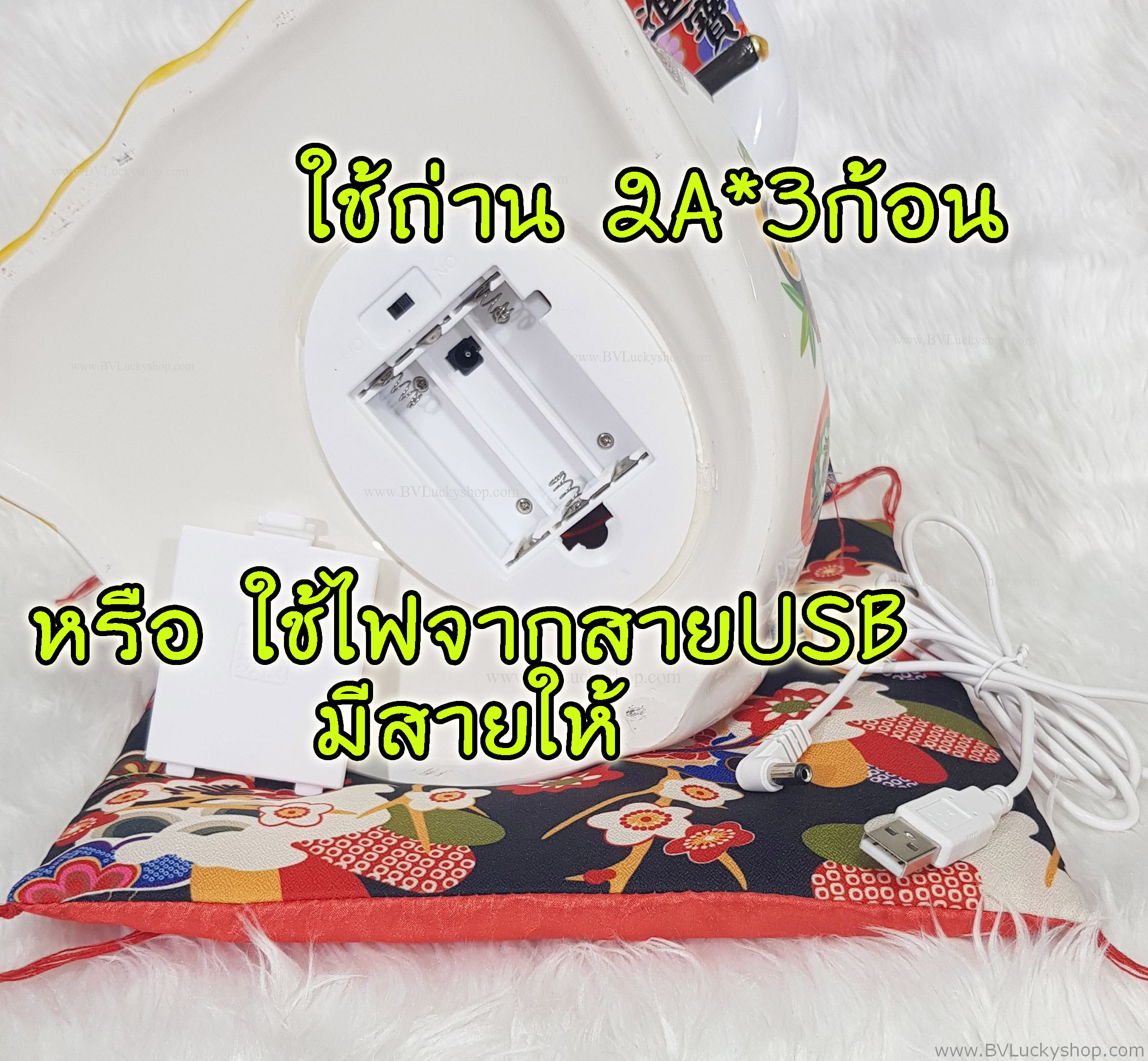 - มือกวักได้ ใช้ถ่าน 2A*3ก้อน หรือ ใช้ไฟจากสาย USB มีสายให้